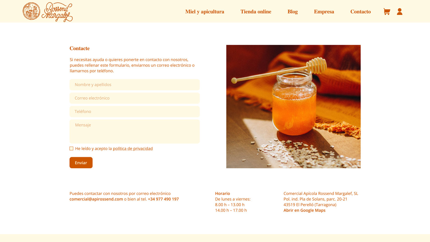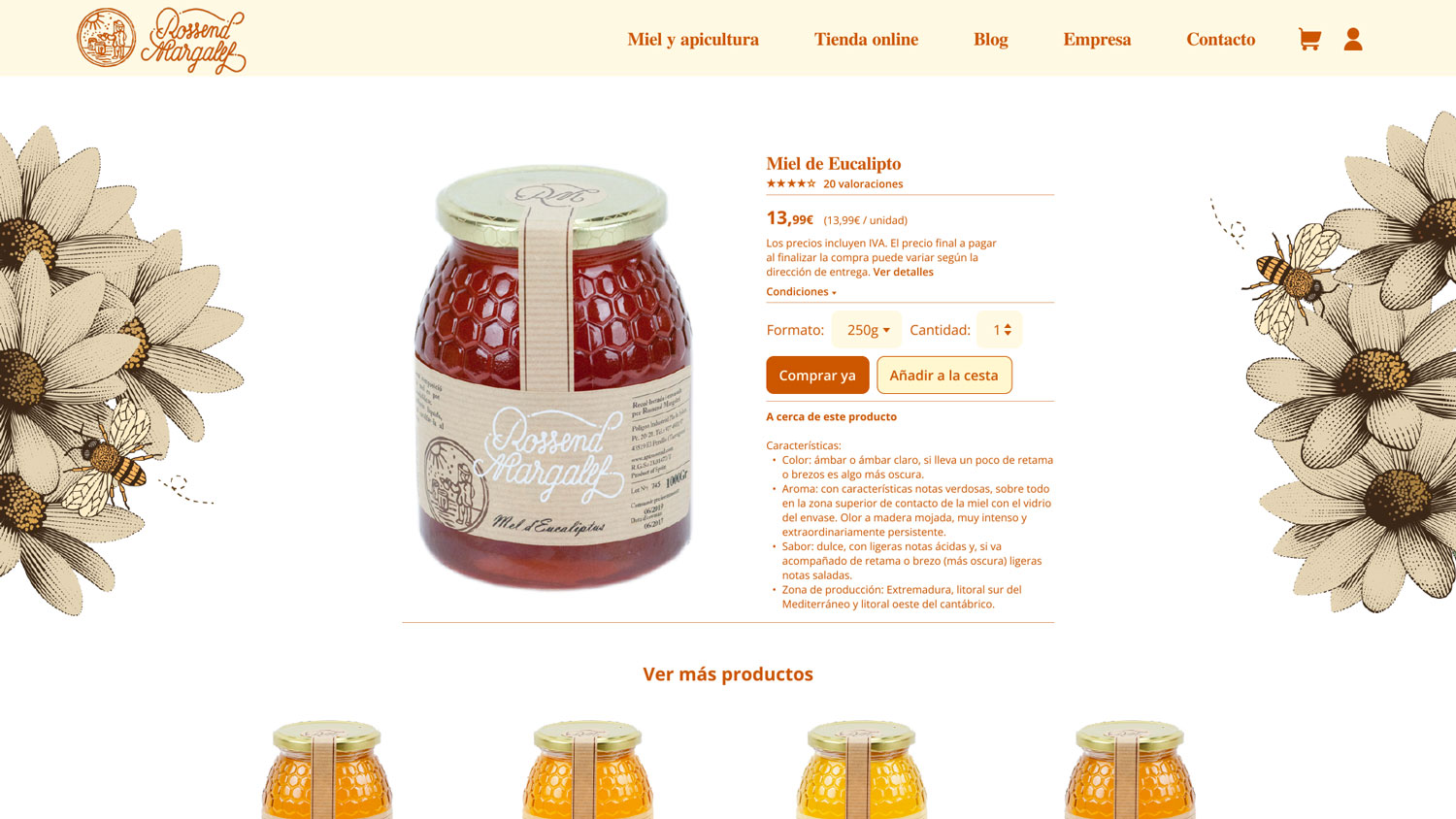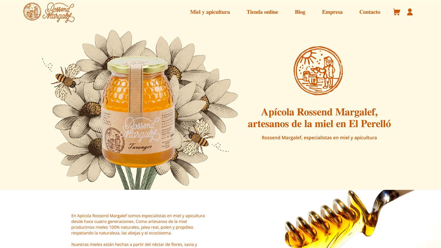 Website design for Rossend Margalef — a heritage-driven apiculture business. I designed the visual identity and digital interface to honor the brand’s deep-rooted tradition in honey production. The project focuses on blending artisanal values with a clean, functional layout, creating an intuitive user experience that connects heritage with modern digital standards.