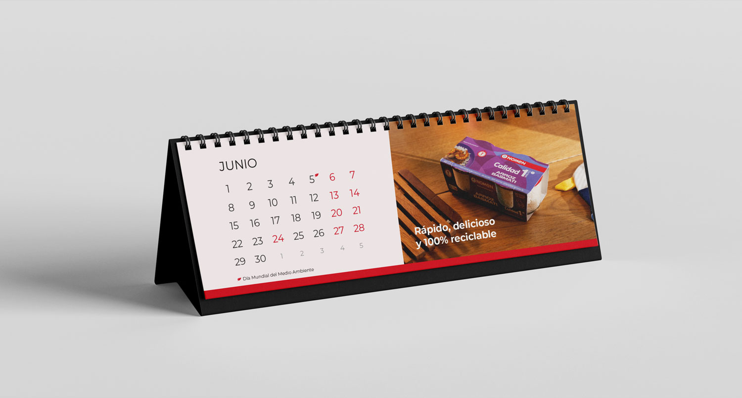 The project functions as a strategic promotional tool: each month integrates specific products with QR codes for direct access to curated recipes, bridging the gap between print and digital content. By including key annual events like the solar eclipse, the design reinforces Nomen’s heritage while staying relevant and engaging in the customer’s daily life.