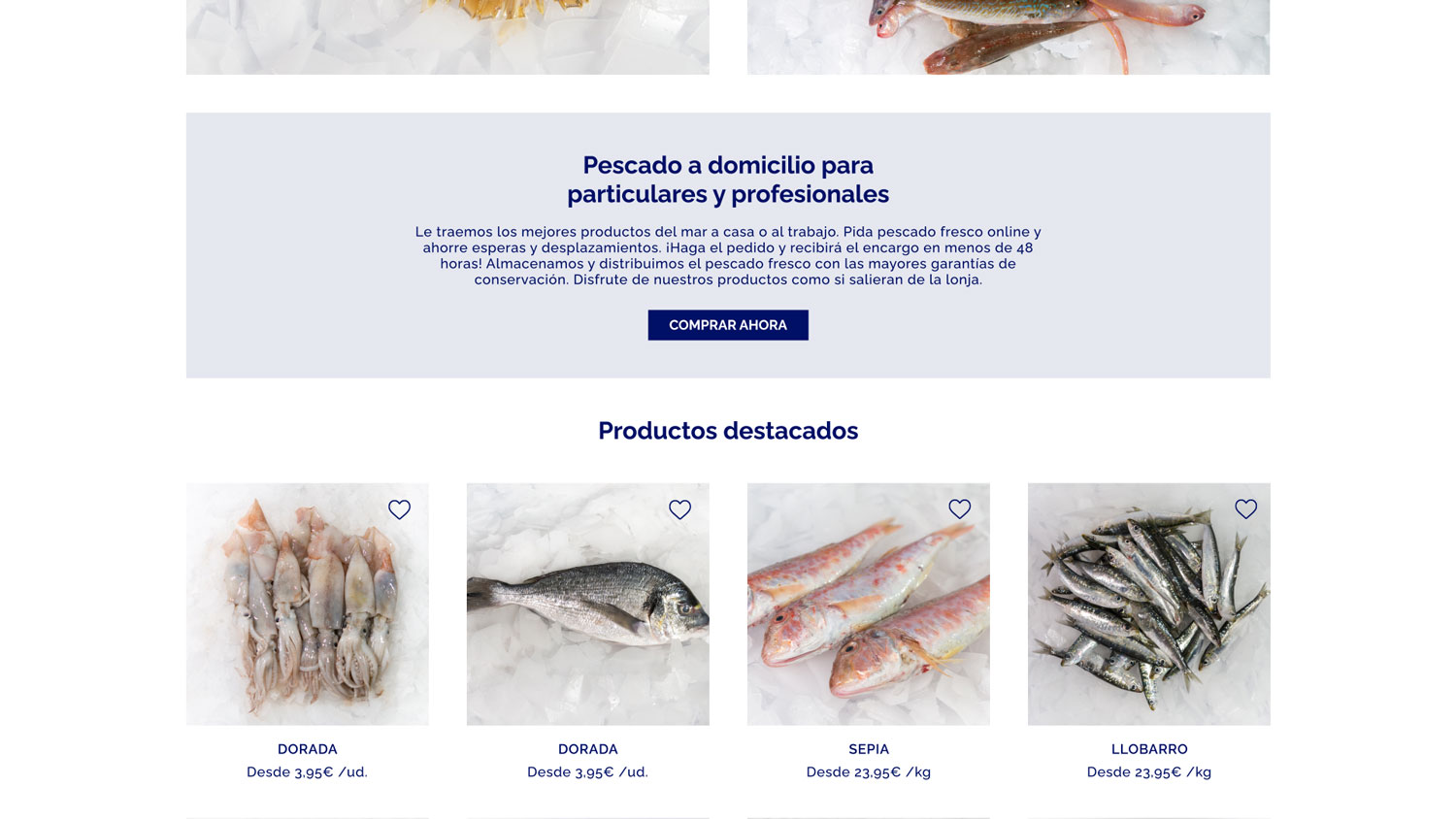 Website UI design for Pescaporta. A seafood distributor based in Spain specializing in fresh product from the Ebro Delta. I designed a clean interface that highlights the quality and Mediterranean origin of their fish and seafood.